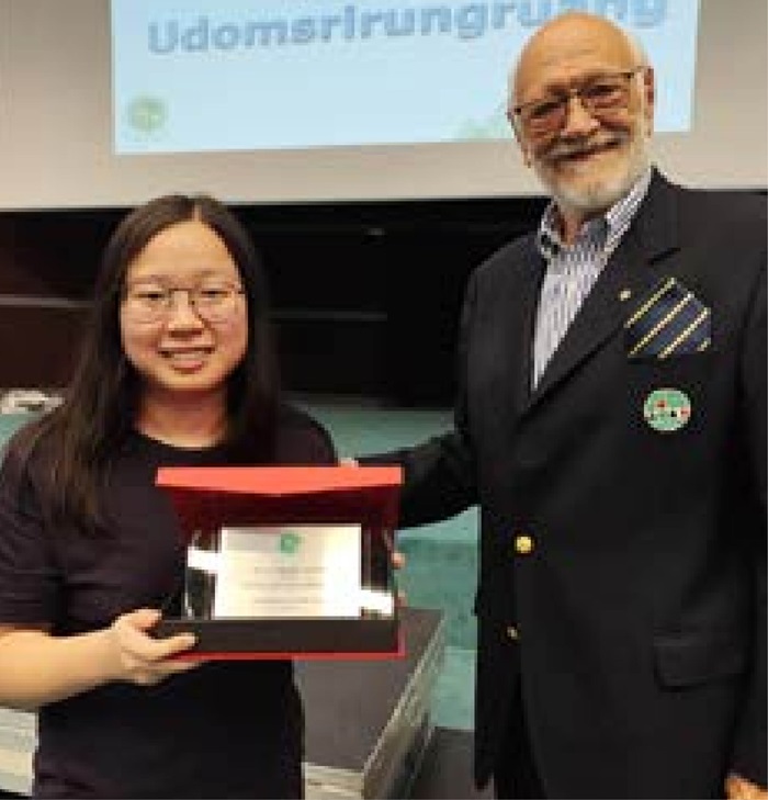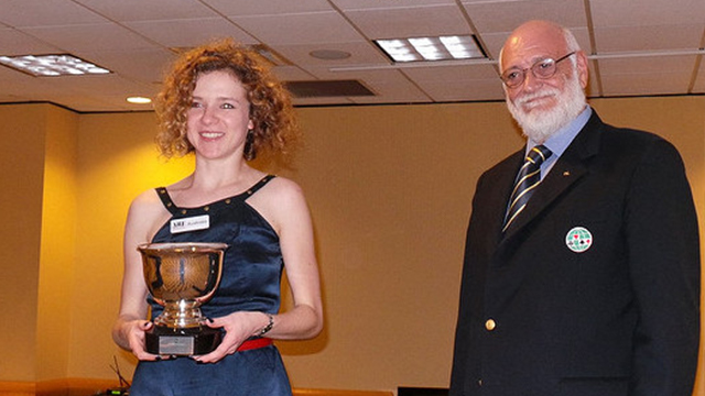 Our third recipient is another young lady who has an international character that combined with her charming personality enables her to make friends easily. Her ability to organise all manner of fun packed activities has endeared her to everyone and typifies the spirit of the camp. She has that rare quality that enables her to get along with the wide range of people that participate in junior events. Her wonderful spirit has spread all over the camp. She is currently relaxing after obtaining her Master’s degree in Mathematics. Aged 24 please step forward Kathrine Bertheau of Sweden.