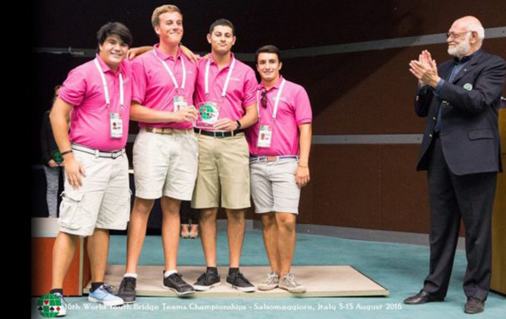 A most welcome newcomer to the world of bridge and a real sportsman. He learned the game only six months ago when he suffered an injury at basketball. He turned to bridge valuing the social aspect of the game; he came here to make friends and became everybody’s friend as a result. His kindness and amiability were seen by all as being quite remarkable. He has a wide range of interests which have served to develop in him a strength of purpose rarely seen in one of his age. Whatever you wish to talk about – history, art, social welfare and development but also sports, games and of course, bridge – he is able to contribute to the discussion in a knowledgeable way. The world of Junior Bridge is simply richer by having people like Peter Pade of Denmark.