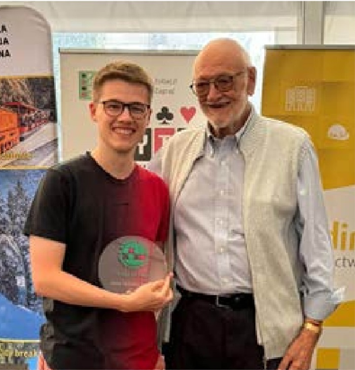 He is 20 years old and was participating in a Junior Camp for the first time. Normally one would expect newcomers to take a day or two to adjust. Not so with him. From the very beginning he took an active role in everything that was going on in the Camp, mixing with players from other countries and making numerous friends. The smile never left his face. He was appreciated by everybody and he was constantly available to help whenever and wherever needed. It is very hard to think of a more ideal participant at a Junior Camp, or indeed of a better person to receive this special WBF award. The Junior Camps and the ideals they aim to achieve will be going from strength to strength as long as they have participants like Witold Tomaszek of Poland.