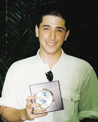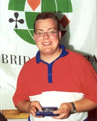 Our first award goes to someone who typifies the definition of a suitable candidate: cheerful, outgoing, and helpful, with an enthusiasm for both the game of bridge and life in general, which is infectious. This candidate was nominated by players of several different nationalities. He has taken trouble to assist in improving things, both big and small, without being too critical. He speaks several languages, and has been one of the most helpful people in the Camp. He participates fully in the activities but has also found time to write articles for the Daily Bulletin, and clean up the room at the end of play. Aged 23, he is studying medicine at the University of Lausanne. We welcome Andrei Mihailescu of Switzerland.