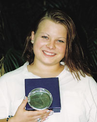 Our third recipient is another young lady who has an international character that combined with her charming personality enables her to make friends easily. Her ability to organise all manner of fun packed activities has endeared her to everyone and typifies the spirit of the camp. She has that rare quality that enables her to get along with the wide range of people that participate in junior events. Her wonderful spirit has spread all over the camp. She is currently relaxing after obtaining her Master’s degree in Mathematics. Aged 24 please step forward Kathrine Bertheau of Sweden.