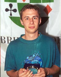 Our first award goes to a participant from one of the ‘low’ countries. In many ways this person typifies the characteristics embodied in a successful candidate. Friendly towards their fellow participants and willing to take part in every event, always with a different partner or group, with the prime objective being to have a good time, regardless of the outcome. This behaviour has been in evidence at a number of camps, but now the junior career of the recipient of this award is almost at an end. Aged 24, he works for an Insurance Company in the field of computers. Please welcome the Netherlands Schelte Wijma.