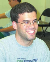 Our first award goes across the water. Its recipient proved to be one of the friendliest inhabitants of the camp. Conversations with his fellow participants quickly established that beneath his somewhat exuberant exterior lay a warm sense of humour and considerable personality. His kindness towards his partners at the table and his willingness to accept the blame endeared him to everyone. The stories of his homeland, relating to both his life and his bridge adventures never failed to be of interest. Aged 25, practically an ‘oldie’ he trades grain futures at the Chicago Board of Trade. Congratulations, Daniel Zagorin of the USA.