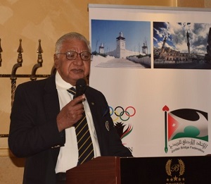 In his address Mr. Rona welcomed the players, representing 9 of the 11 BFAME affiliated Countries, expressed his gratitude to H. R. H. Prince Faisal Ben Al Hussein for his high patronage and congratulated the Jordanian Bridge Federation and the Local Organizing Committee.